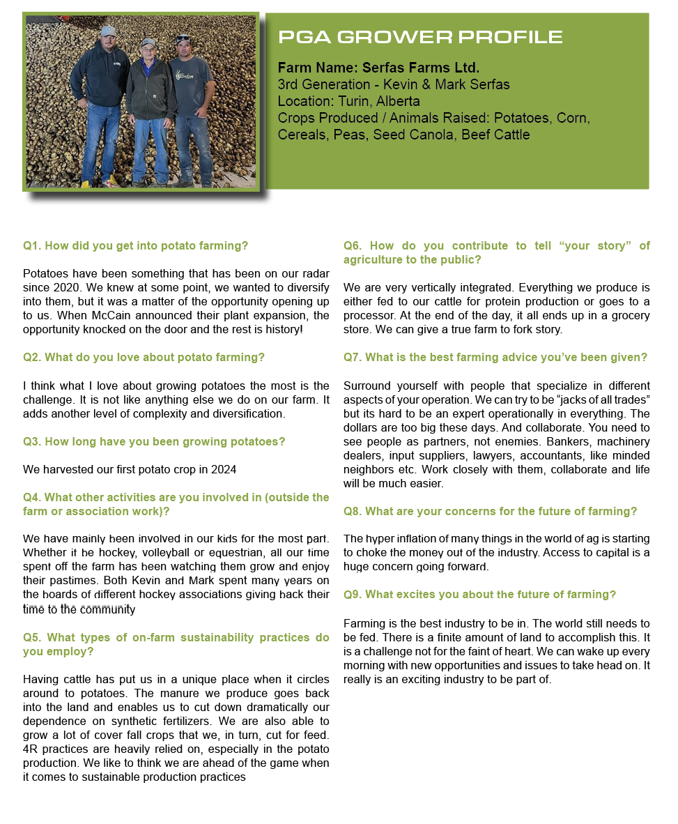 | Claassen Farms | Norbest Farms Ltd | A & A Seed Potatoes | Groot Farms Ltd. |